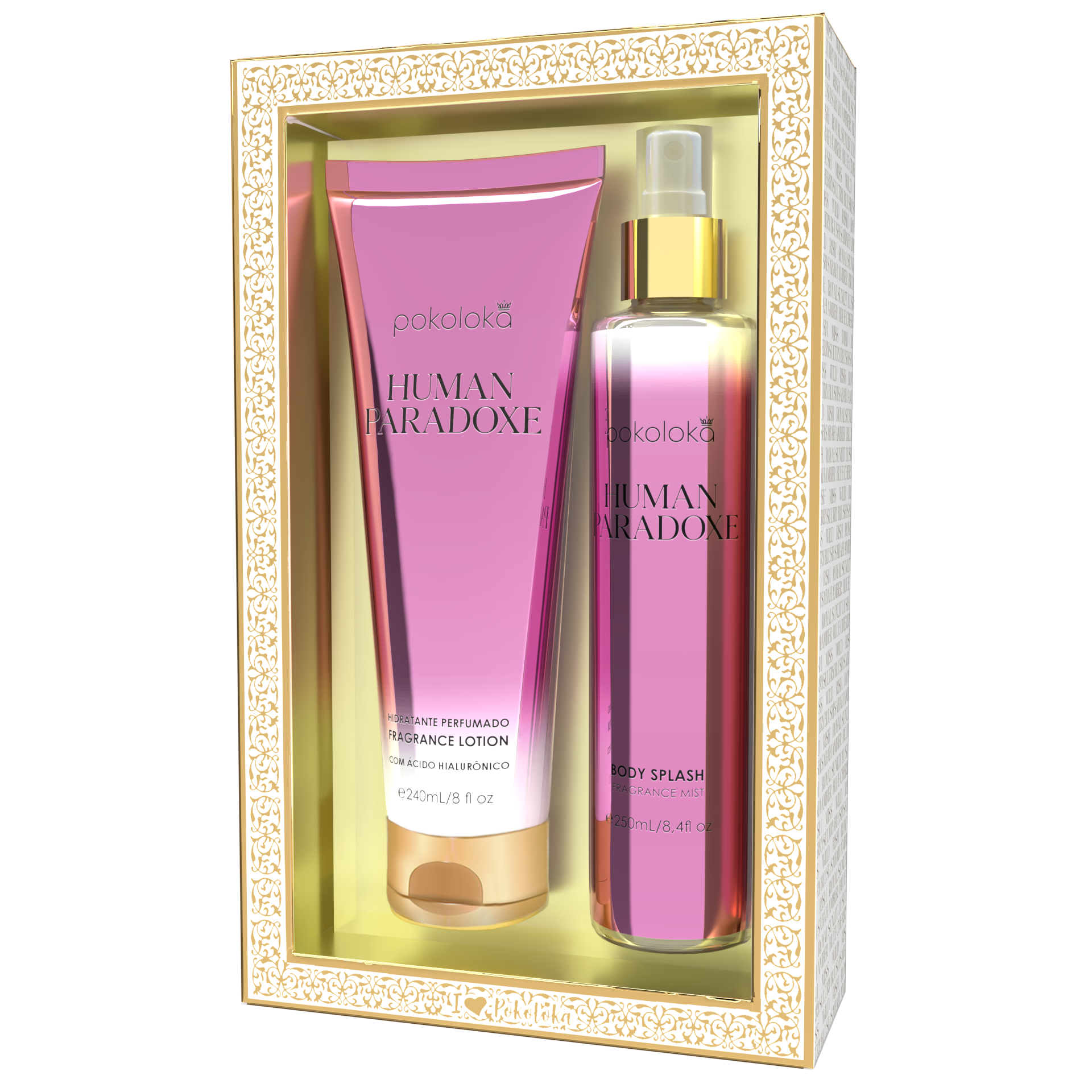 Inspirado na icônica fragrância Prada Paradoxe, da Prada, o Kit Luxury Human Paradoxe combina hidratação intensa e perfumação marcante, proporcionando uma experiência envolvente e sofisticada. Composto pelo Hidratante Perfumado Human Paradoxe (240ml) e pelo Body Splash Human Paradoxe (250ml), esse kit deixa a pele macia, hidratada e com um perfume floral ambarado que equilibra frescor, intensidade e sofisticação.